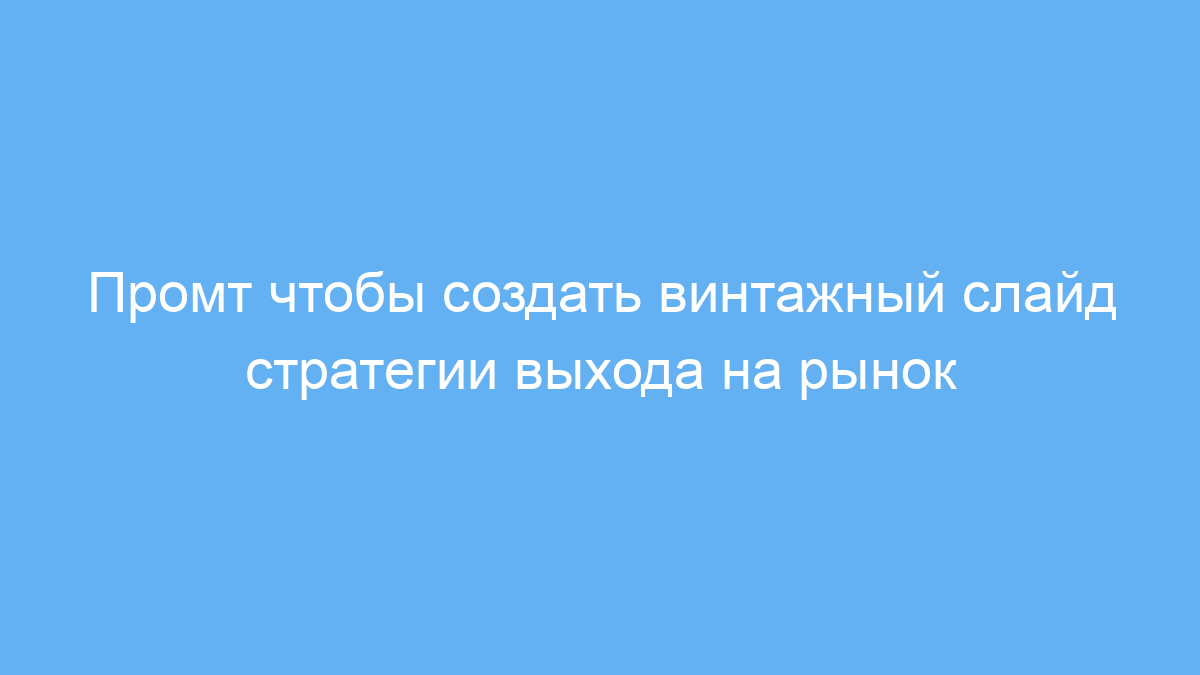 Этот промт значительно ускоряет создание качественных и стильных слайдов, помогая подчеркнуть важные аспекты стратегии выхода на рынок в визуальном формате. Он экономит время дизайнера и маркетолога, при этом гарантируя привлекательное и понятное оформление.