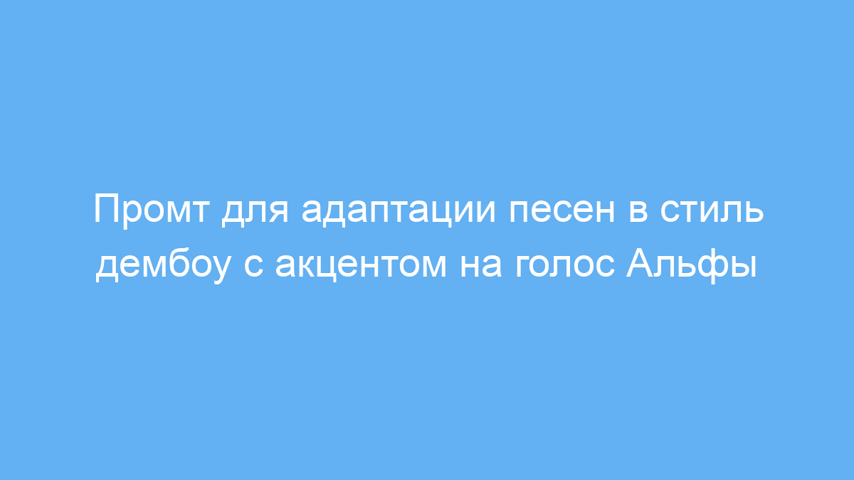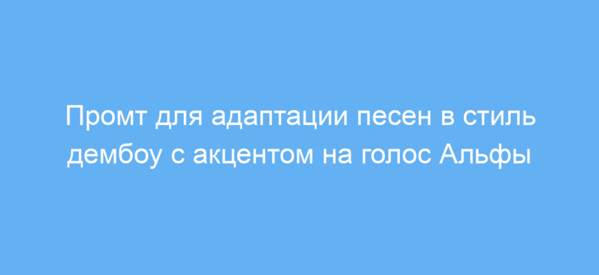 Работает промт так: нейросеть получает исходный текст песни и создаёт новый музыкальный трек, сохраняя смысл и слова, но изменяя аранжировку на стиль дембоу. При этом акцент делается на голос исполнителя Альфы, создавая уникальный звук, готовый к публикации на стриминговых сервисах.