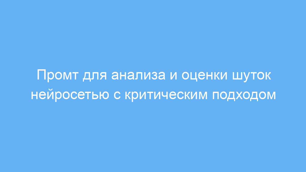 - Используйте этот промт, когда нужно глубоко проанализировать юмор или проверить, насколько шутка действительно смешная.