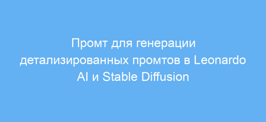 Этот промт предназначен для пользователей систем генерации изображений по текстовым описаниям, таких как Leonardo AI и Stable Diffusion. Он помогает создавать качественные, структурированные промты для получения точных и эффектных изображений. Особенно полезен дизайнерам, иллюстраторам и всем, кто хочет быстро сформулировать запрос для нейросети с нужными визуальными параметрами.