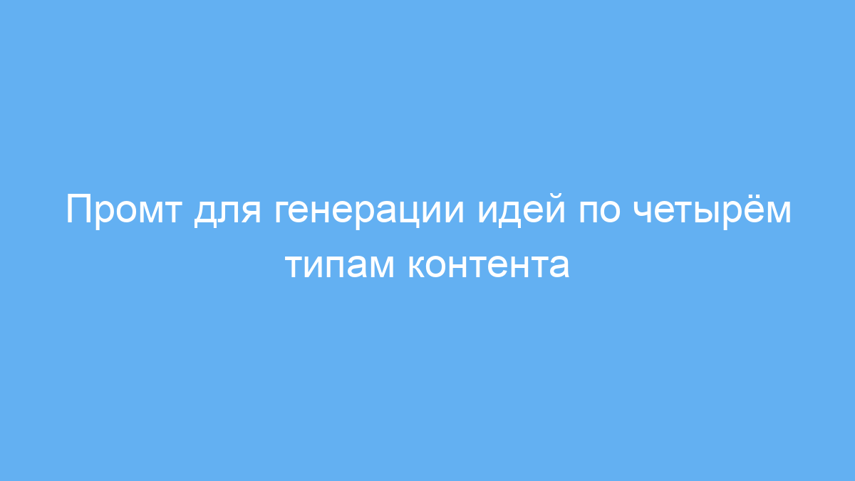 Промт решает задачи генерации разнообразных по стилю и направленности идей по одной теме. Это особенно полезно для разработки контент-планов, подготовки материалов для блогов, рассылок, презентаций и исследований. Его использование экономит время и помогает структурировать мысли по четырём большим категориям и их подтемам.