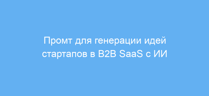 Этот промт создан для предпринимателей, маркетологов и специалистов по продукту, которым нужно быстро получить свежие и качественные идеи для стартапов в сфере корпоративного B2B SaaS. Он помогает сгенерировать вдохновляющие проекты с использованием искусственного интеллекта, которые будут привлекательны для инвесторов.