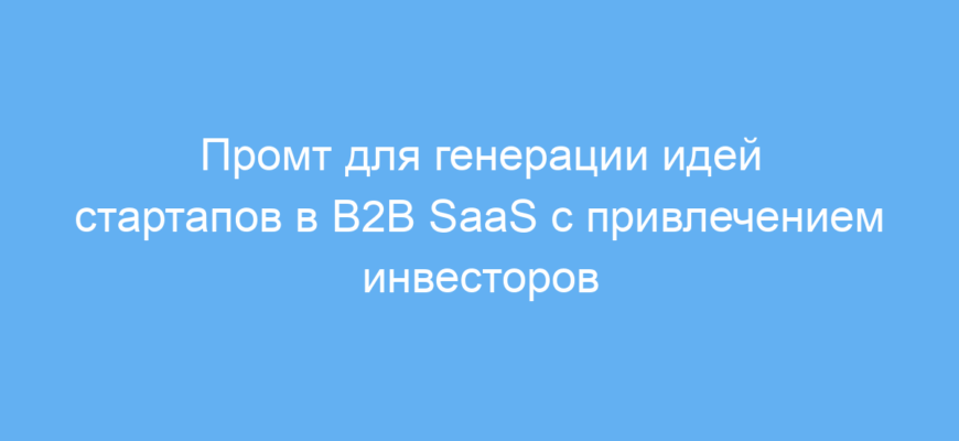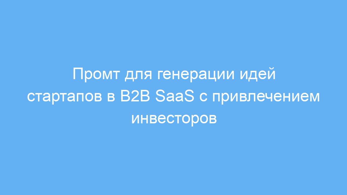 Этот промт помогает быстро создавать качественные и убедительные идеи для B2B SaaS-стартапов, которые заинтересуют инвесторов. Он упрощает процесс генерации и структурирования концепций, экономит время и повышает креативность, помогая продавать будущие проекты быстрее и увереннее.