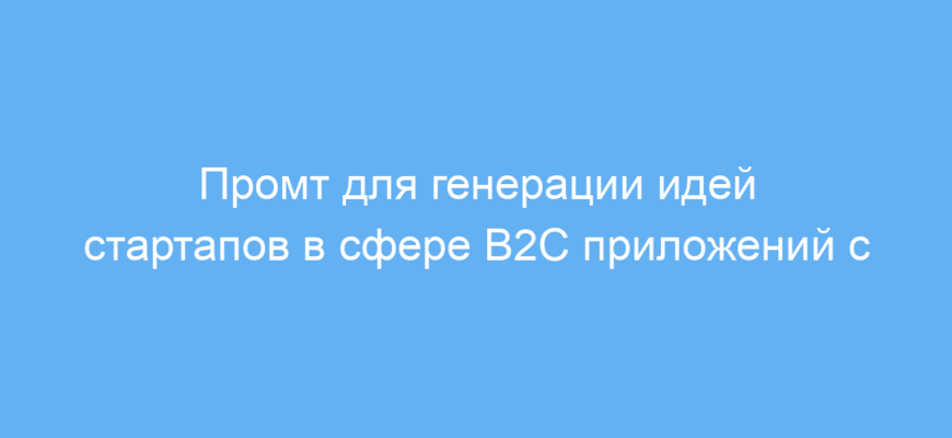 Этот промт значительно сокращает время поиска сильных и убедительных бизнес-идей в сфере B2C приложений с использованием искусственного интеллекта. Он помогает сформировать проекты с конкурентным преимуществом и понятной миссией для инвесторов. Благодаря ему легко получить свежие креативные концепции сразу, что ускоряет этап планирования и подготовки стартапа.