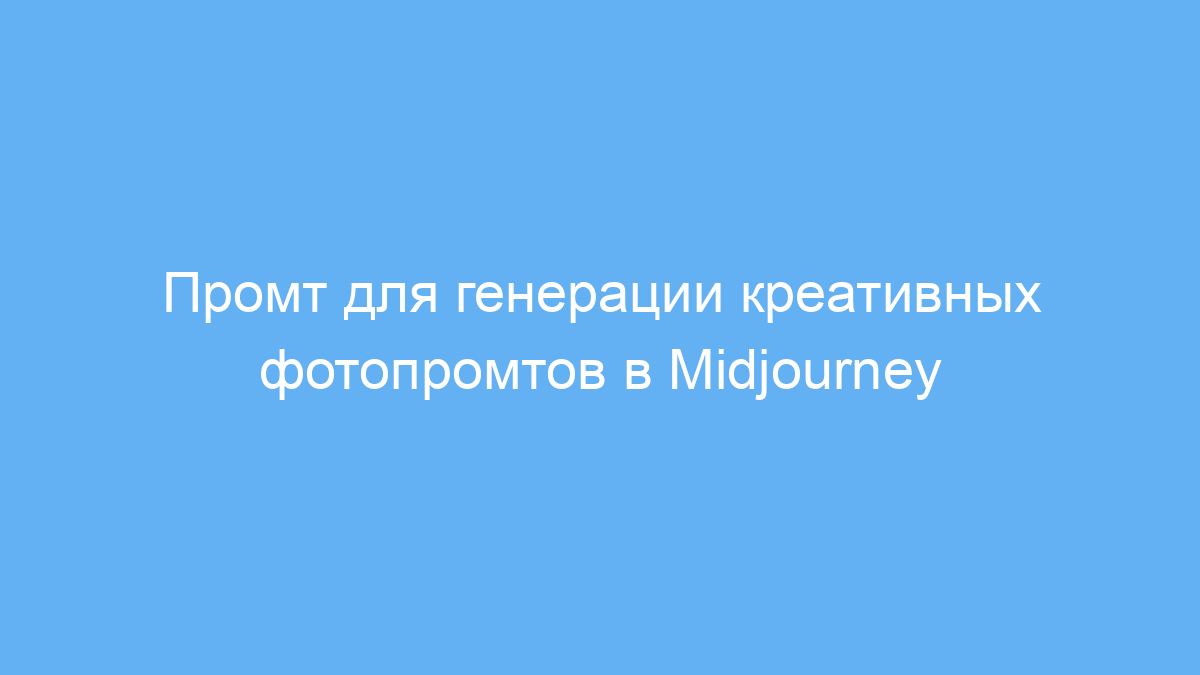 Этот промт разработан для художников, фотографов, дизайнеров и всех, кто создаёт изображения с помощью нейросети Midjourney. Он помогает быстро получать вдохновляющие и детальные описания для создания фотографий и кинематографических кадров в разных стилях и с разнообразными приёмами освещения и композиции.