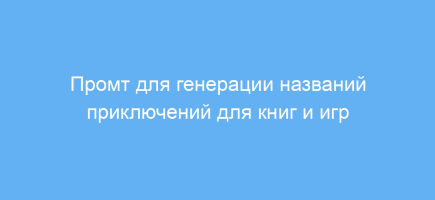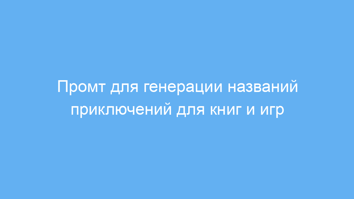 Этот промт создан для авторов, геймдизайнеров, а также для любителей ролевых игр и просто творческих людей. Он помогает быстро и легко придумать оригинальные и интересные названия для приключений — например, для романов, настольных или компьютерных ролевых игр, а также для разнообразных развлекательных проектов.