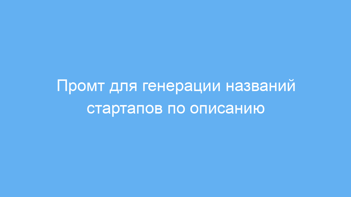 Этот промт позволяет быстро придумать профессиональные и современные названия для ваших стартапов. Он упрощает процесс брендинга и помогает найти уникальные идеи, беря данные из вашего описания.