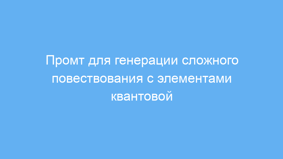 Этот промт предназначен для пользователей, которые хотят получить детализированное и многослойное повествование с элементами научной фантастики и квантовой физики. Он отлично подойдет писателям, авторам тематических блогов, а также исследователям и преподавателям, желающим продемонстрировать сложные концепции квантовой механики в виде увлекательного и структурированного текста.