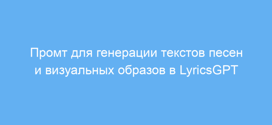 Использование этого промта позволяет легко создавать уникальные и профессионально проработанные тексты песен вместе с подробными визуальными описаниями. Это помогает создавать цельный творческий продукт без лишних затрат времени и усилий. Особенно полезен для авторов, ищущих вдохновение и желающих получить сразу лирику и образ для дальнейшей визуализации или промо.