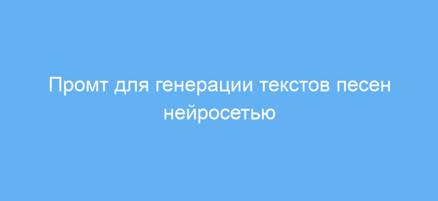 Этот промт создан для тех, кто хочет быстро и качественно сгенерировать текст песни с помощью нейросети. В первую очередь он будет полезен музыкантам, поэтам, авторам текстов и всем, кто занимается сочинением песен. С его помощью можно преодолеть творческие блоки и получить оригинальный материал для дальнейшей доработки.