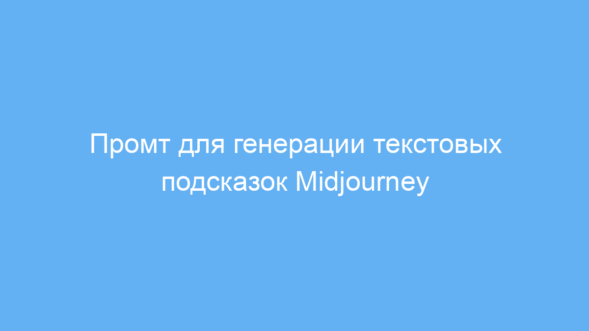 Данный промт предназначен для пользователей, которые хотят быстро создавать готовые текстовые подсказки (промты) для нейросети Midjourney. Это полезно художникам, дизайнерам, маркетологам и всем, кто работает с генерацией изображений на основе текста.