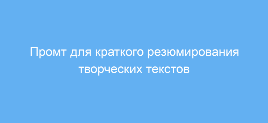 Использование этого промта помогает быстро и четко сформировать краткое содержание творческих текстов. Это экономит время при чтении и обработке текстов, облегчает подготовку материалов и позволяет сосредоточиться на главном.
