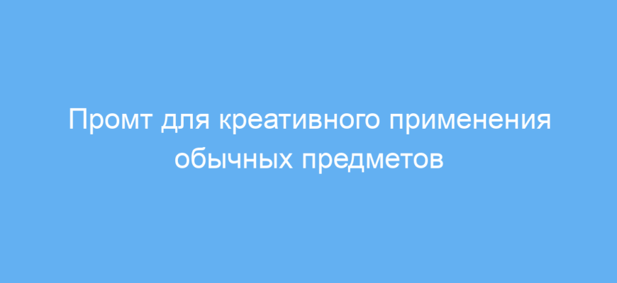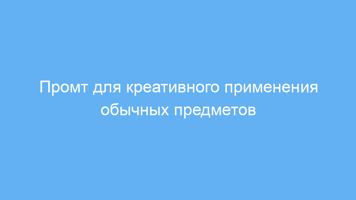 Этот промт предназначен для всех, кто хочет расширить своё мышление и найти необычные способы использования привычных вещей. Он поможет создавать креативные идеи для работы, учебы, хобби или даже маркетинга. Часто мы используем предметы по прямому назначению, не замечая других полезных функций — этот промт решает именно эту проблему, генерируя нестандартные применения, о которых обычно не задумываются.