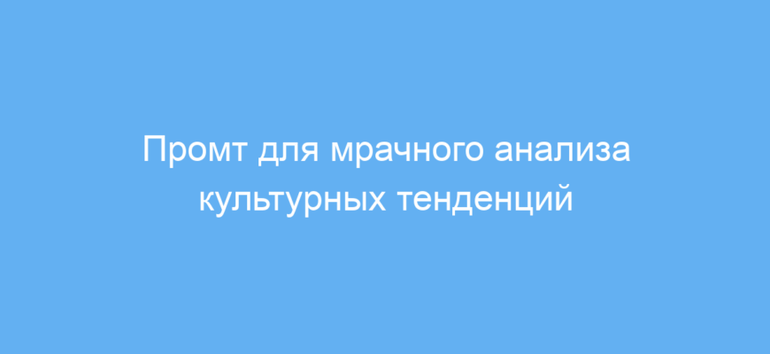 Данный промт предназначен для людей, которые хотят получить глубокий и нестандартный взгляд на современные культурные события и явления. Его используют исследователи, писатели, журналисты и студенты, чтобы выявить скрытые смыслы и потенциальные негативные последствия в культуре. Такой подход помогает по-новому взглянуть на привычные вещи, раскрывая циничные или мрачные интерпретации, которые обычно остаются вне внимания.