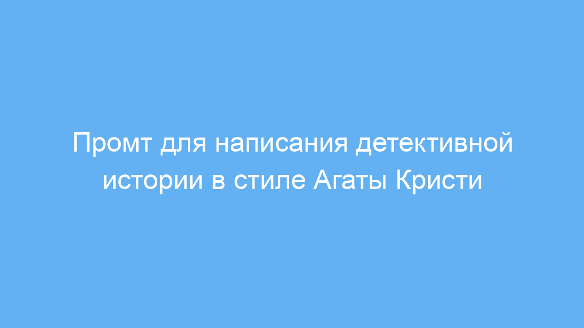 Этот промт предназначен для тех, кто хочет быстро и просто создать детективный рассказ в жанре классической загадки, напоминающий стиль Агаты Кристи. Он подойдёт писателям-любителям, преподавателям литературы, студентам и всем, кто интересуется созданием текста с интригующим сюжетом и запутанным убийством.