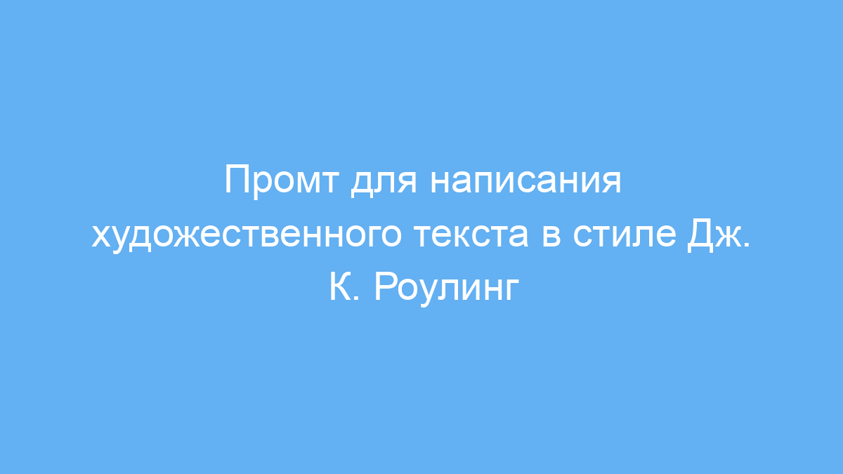 Этот промт значительно упрощает работу с нейросетью при создании литературных текстов в стиле Дж. К. Роулинг. Он помогает сгенерировать атмосферный, живой и захватывающий рассказ, который легко читается и удерживает внимание читателя. Использование чётких правил повествования и стилистических ограничений позволяет добиться высокого качества текста без лишних правок.