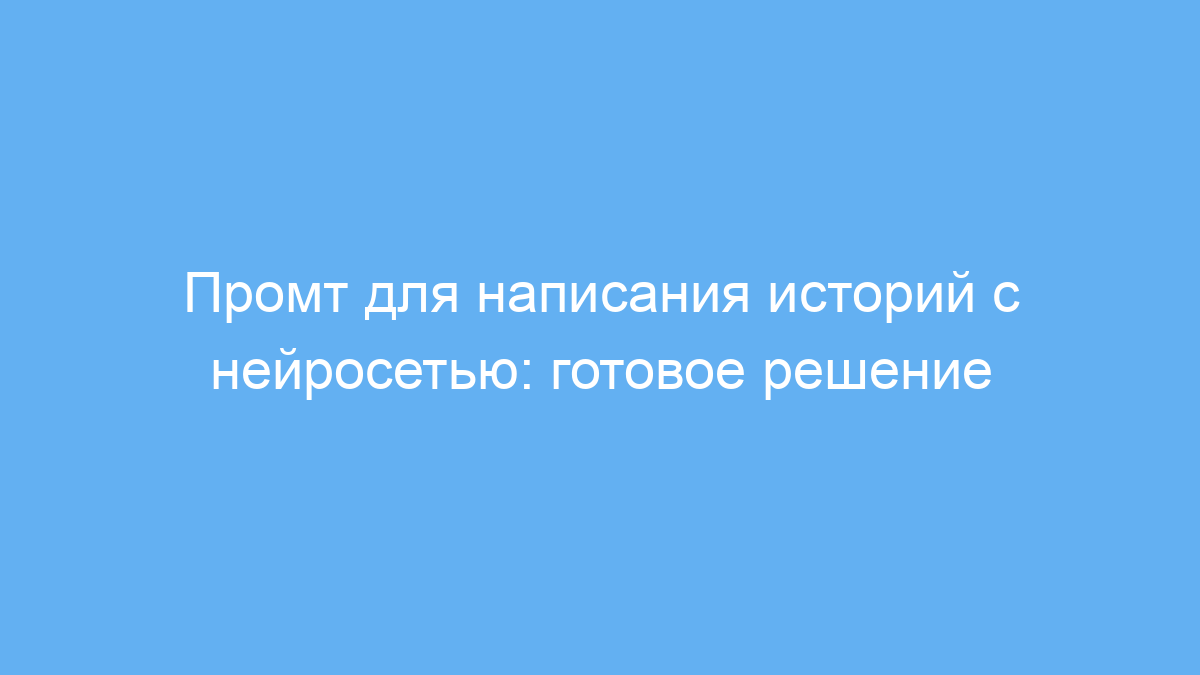 Этот промт создан для тех, кто хочет быстро и легко получать качественные истории, написанные с помощью нейросети. Он подойдет писателям, блогерам, преподавателям и всем, кто нуждается в творческом тексте, основанном на реалистичных жизненных ситуациях.