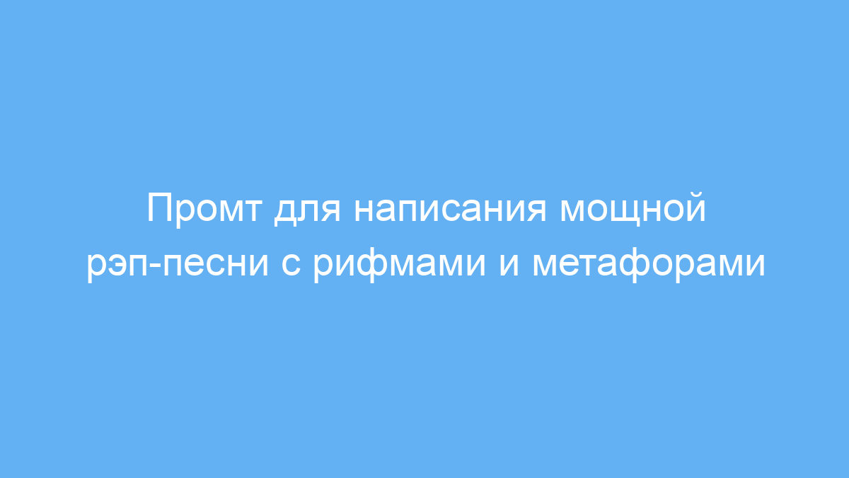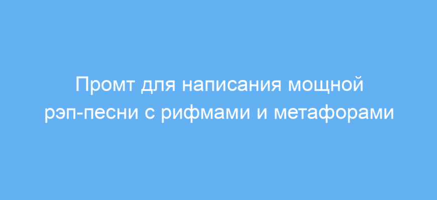 Использование данного промта ускоряет процесс написания качественных рэп-текстов и позволяет даже новичкам создавать глубокие, запоминающиеся произведения. Он способствует структурированию творческого процесса и помогает нейросети выдавать тексты, соответствующие высоким стандартам лирики и стиля.