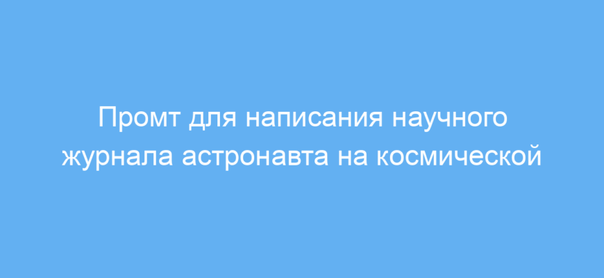 Этот промт создан для тех, кто хочет получить увлекательный и детальный научно-популярный текст от лица астронавта, живущего и работающего на орбитальной станции Lunar Gateway. Чаще всего его используют писатели, блогеры, создатели контента и исследователи, которым необходимо представить космическую тематику в живом, реалистичном формате дневника эксперта.