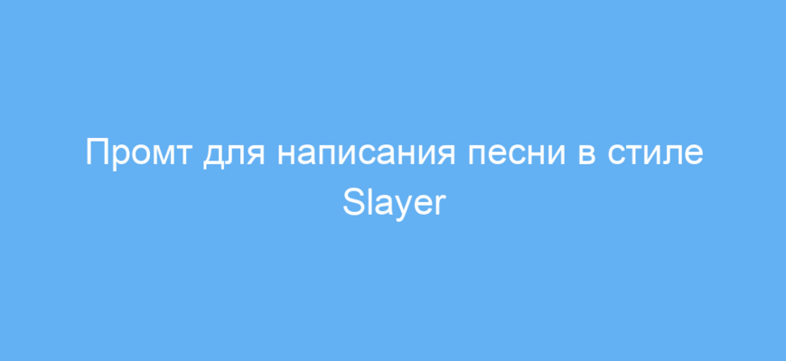 Пример 1: Создать песню в стиле Slayer с мрачной атмосферой и жёстким языком для своего метал-группы.