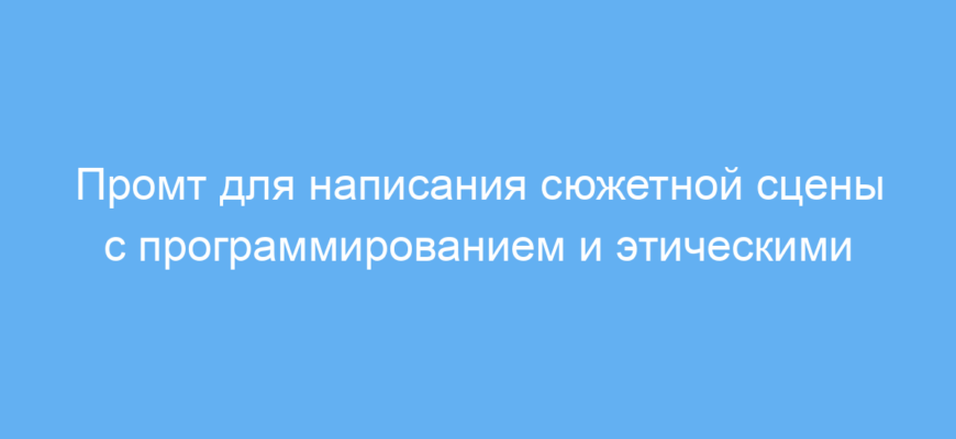 Использование этого промта экономит время и силы при создании глубокой, интересной сюжетной сцены с программированием и моральными выборками. Он позволяет легко генерировать уникальные сцены с эмоциональной и интеллектуальной нагрузкой, что ценно для сценаристов и преподавателей IT тематики.