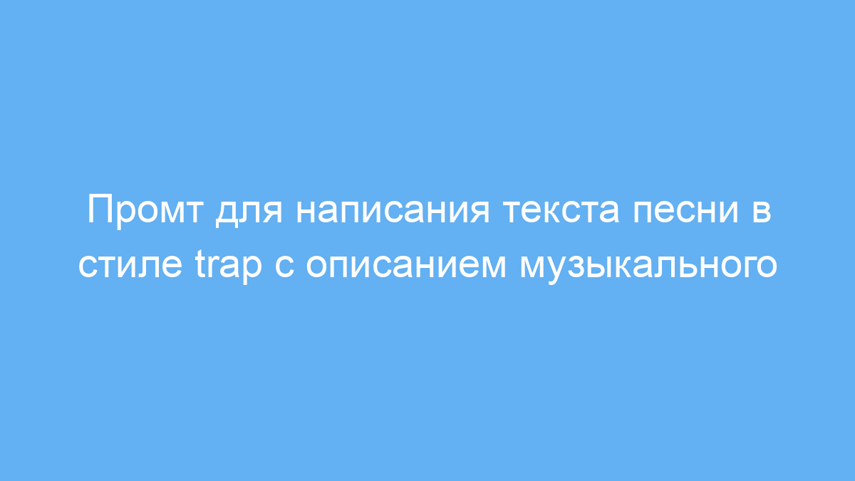 Принцип работы основан на том, что нейросеть получает подробное задание, в котором расписана структура песни и конкретные требования к музыкальному сопровождению. Такая четкая инструкция позволяет получить развернутый и качественный текст, адаптированный именно под стиль trap с необходимой динамикой и атмосферой.
