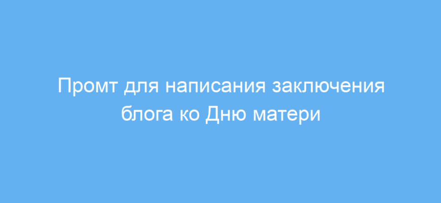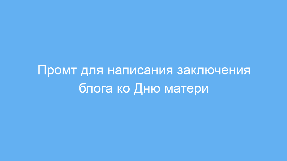 Этот промт предназначен для блогеров, копирайтеров и создателей контента, которые пишут статьи ко Дню матери. Он помогает быстро создать короткое, емкое и вдохновляющее заключение, подводящее итог основным идеям поста и мотивирующее читателей к действию.