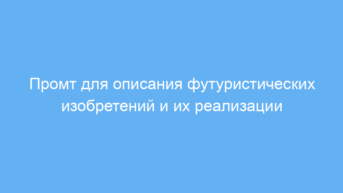 Этот промт создан для специалистов и энтузиастов искусственного интеллекта, научных консультантов, авторов, дизайнеров и исследователей, которые хотят генерировать креативные идеи футуристических изобретений. Он помогает создавать уникальные концепции технологий, которые сегодня кажутся невозможными, и подробно раскрывать перспективы их реализации.