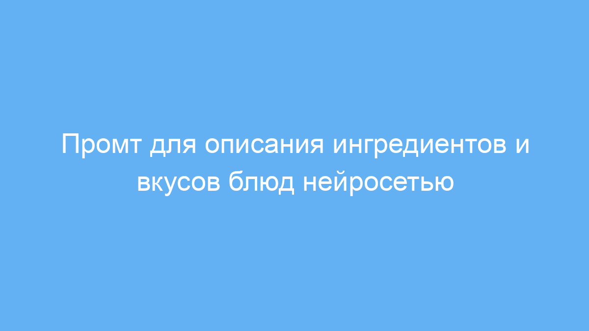 - Промт хорошо работает на популярных и традиционных блюдах, с экзотикой возможны погрешности в ингредиентах.