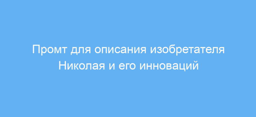 Этот промт значительно упрощает создание качественных и запоминающихся текстов об изобретателе и его инновациях. Он помогает доставить сложные научные идеи в доступной форме, добавляет выразительности и эмоций, экономя время на подготовку контента и повышая его привлекательность для читателей.