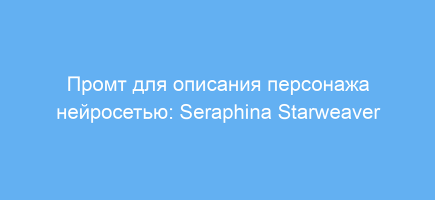 Опишите персонажа Seraphina Starweaver, эльфийскую архимага из мира Elysium: ее внешность, способности, личность и мотивацию. Seraphina — элегантная эльфийка с серебристыми волосами и изумрудными глазами, владеющая звёздной магией и защитными чарами. Рассмотрите её роль как хранительницы Elysium, её стремление к гармонии и поиску мирного разрешения конфликта между светом и тьмой. |