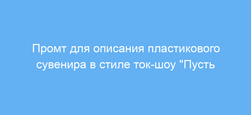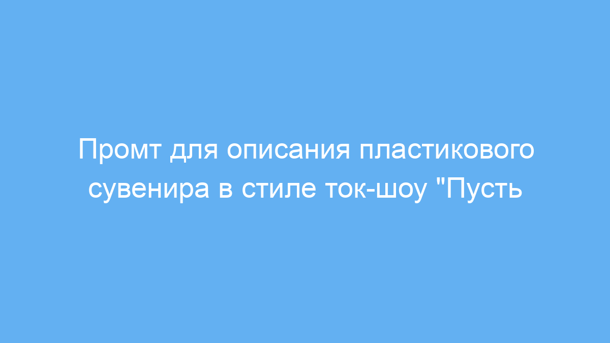 Этот промт помогает быстро создавать содержательные и тематические описания сувениров в стиле «Пусть говорят». Он экономит время, облегчает работу с текстами и повышает качество презентации товаров для каталогов и сайтов.