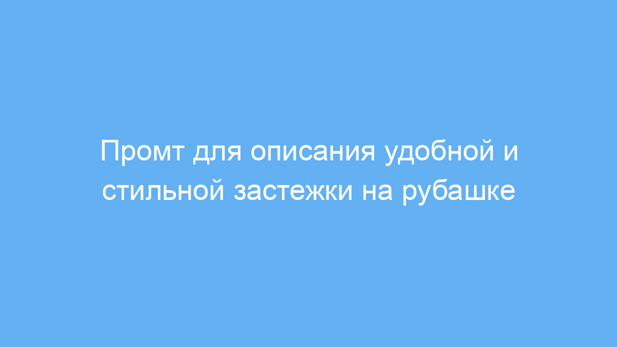 Этот промт экономит время и силы при создании качественных описаний для рубашек с акцентом на застежки. Он помогает быстро получить ясный, структурированный и коммерчески привлекательный текст, который способствует увеличению продаж.