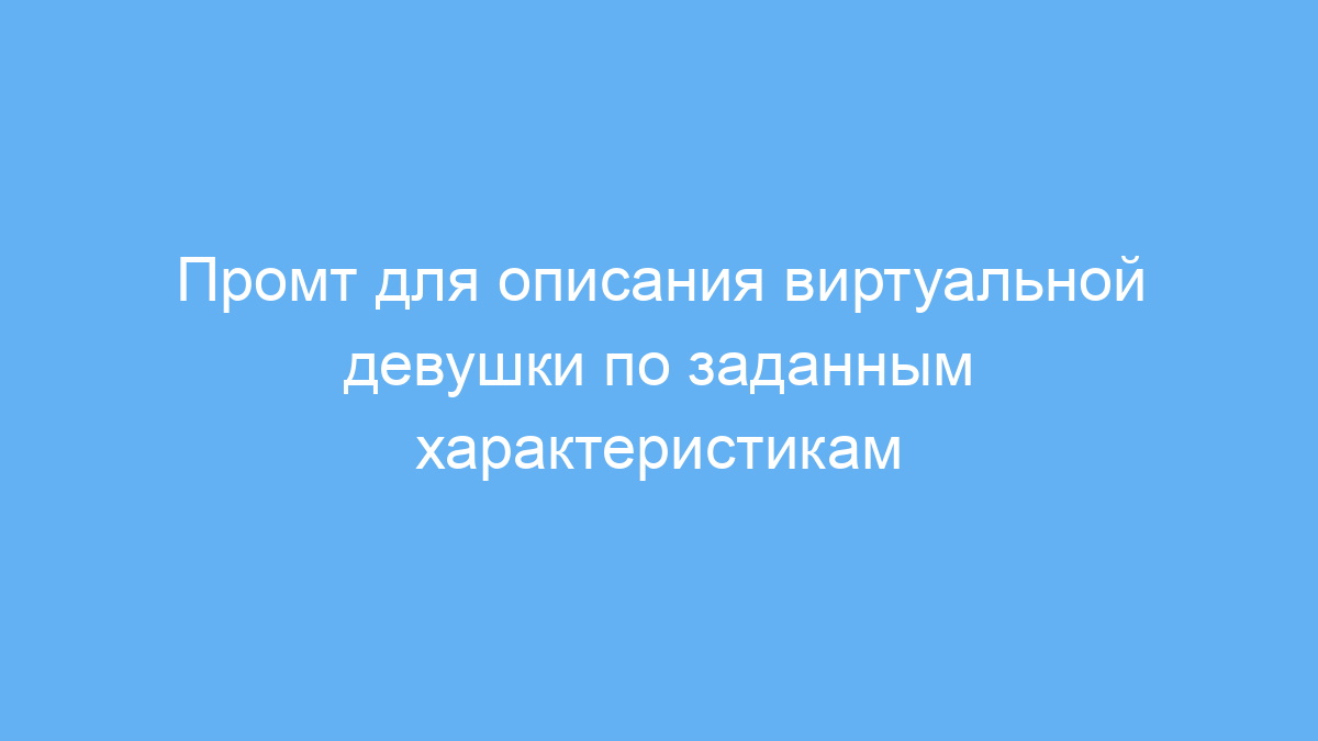 Этот промт создан для тех, кто хочет быстро получить подробное описание виртуальной девушки с учётом заданных параметров: внешний вид, стиль, характер и интересы. Он полезен копирайтерам, сценаристам, дизайнерам персонажей и всем, кто работает с AI для генерации живых и разнообразных образов.