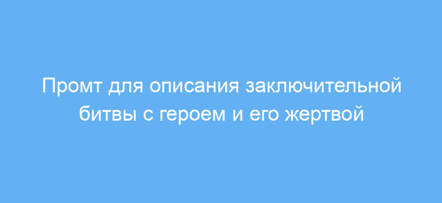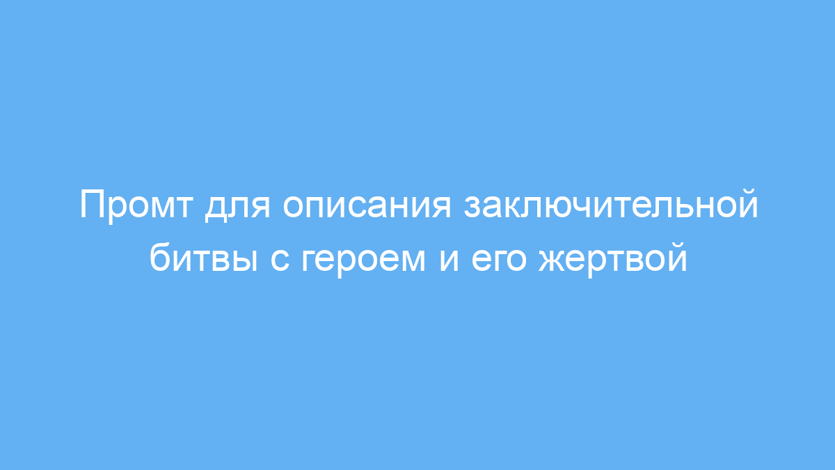 Принцип работы промта прост: вы задаёте нейросети тему — заключительную битву, подчеркивая важность жертвы героя, — и система генерирует яркий, связный и вдохновляющий рассказ. Это экономит время и гарантирует получение текста, соответствующего нужной атмосфере и стилю.