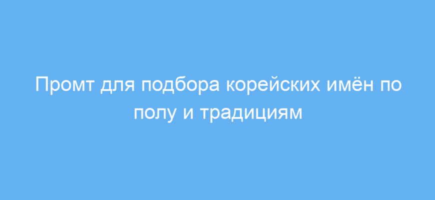 Использование данного промта существенно упрощает задачу выбора аутентичных корейских имён, соответствующих полу и культурным особенностям. Это экономит время, исключает ошибки при придумываении имён и помогает создать живых и достоверных персонажей или найти уникальные имена для разных нужд.
