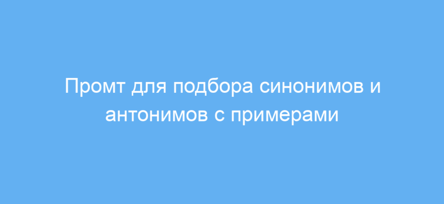 Этот промт предназначен для тех, кто работает с текстом — копирайтеров, редакторов, переводчиков и студентов. Он помогает быстро и качественно найти лучшие синонимы и антонимы к любому слову. Использование промта экономит время на подбор слов, делает тексты более разнообразными и интересными для чтения.