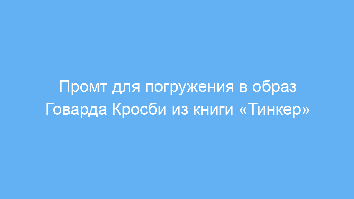 Промт помогает легко и быстро перевести нейросеть в живую и откровенную роль Говарда Кросби из «Тинкера». Это экономит время на объяснения и корректировки, а также даёт насыщенные, яркие тексты, которые сложно получить стандартными запросами.