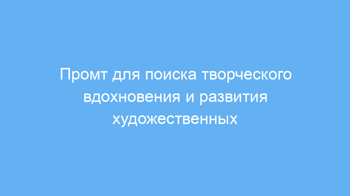Этот промт значительно упрощает поиск новых творческих идей, помогает развивать художественные навыки и углублять понимание искусства. Он экономит время и вдохновляет на интересные проекты благодаря чёткому и структурированному диалогу с нейросетью. Вы всегда можете подобрать подходящий вариант взаимодействия для решения своей задачи и получить как теорию, так и практические советы.