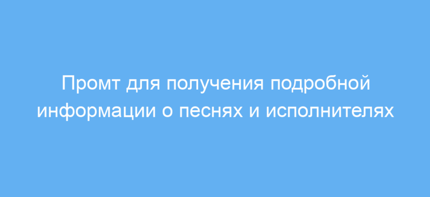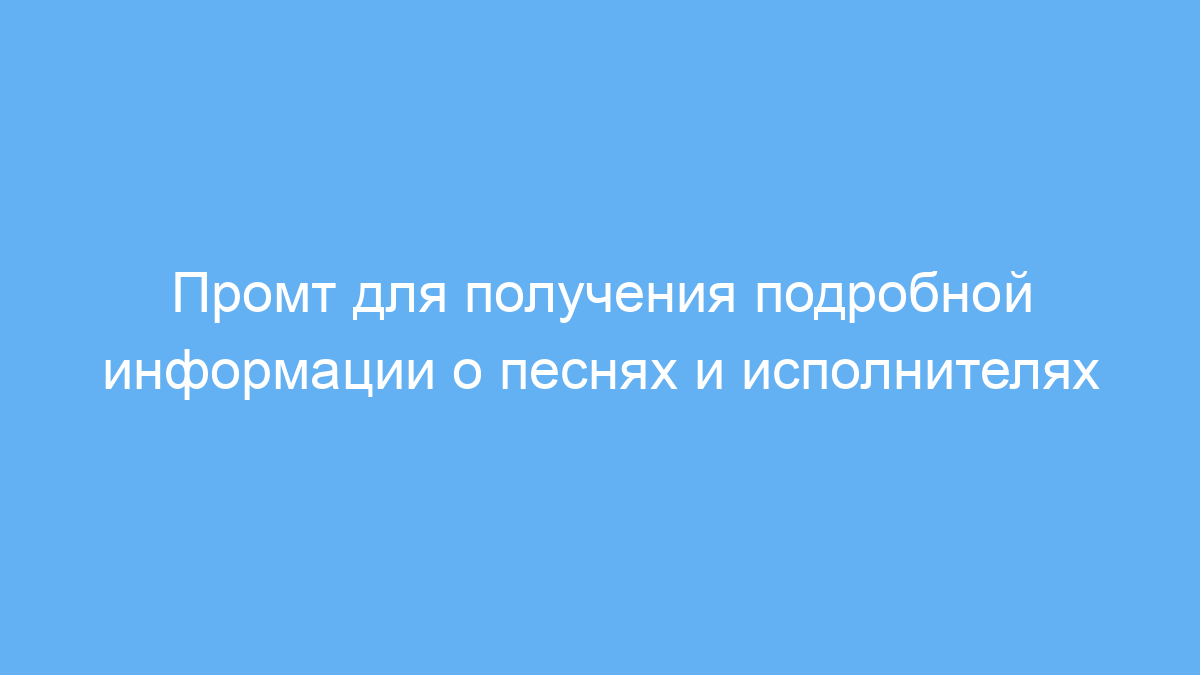 Промт решает проблему поиска достоверных данных — от даты выхода и жанра до продюсеров и интересных фактов о создании трека. Он помогает быстро получить структурированную информацию, которая обычно требует долгого изучения множества источников.
