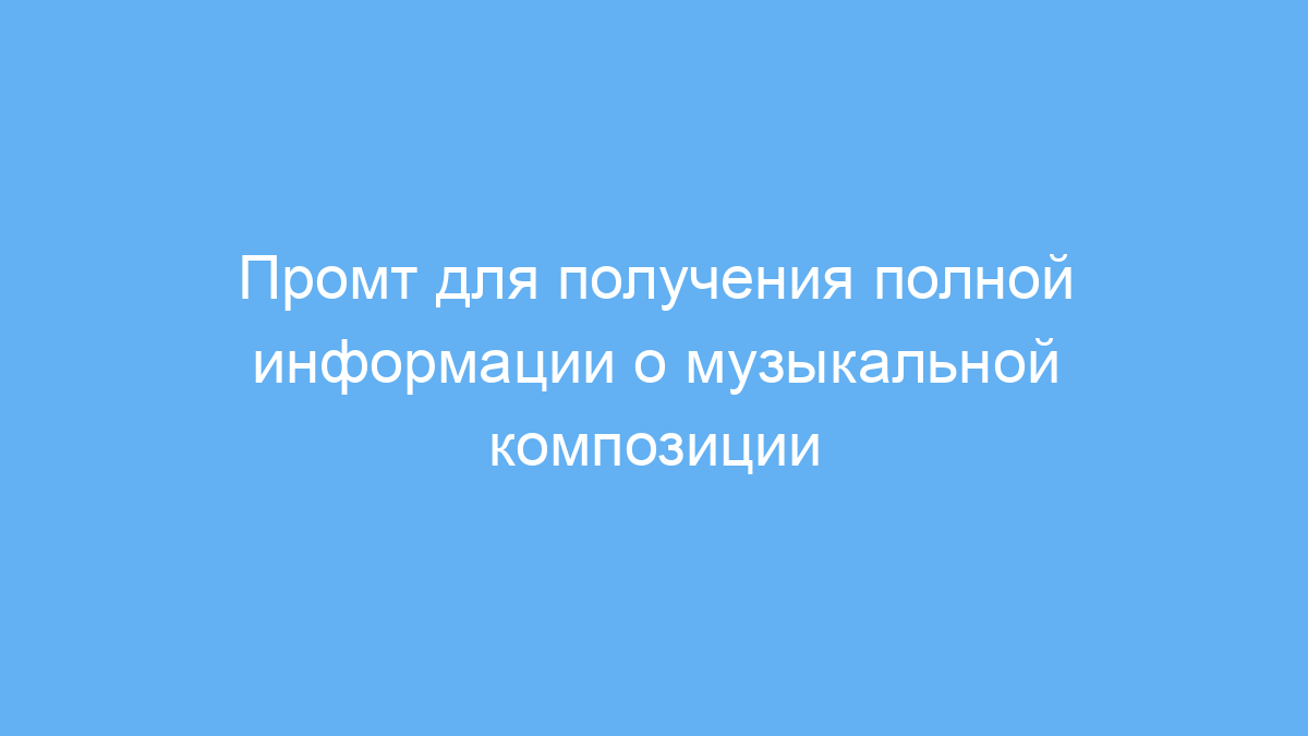 Этот промт предназначен для всех, кто хочет быстро и подробно узнать информацию о музыкальной композиции: от исполнителя и авторов до продюсера и жанра. Он полезен музыкантам, журналистам, блогерам, преподавателям и всем, кто интересуется подробностями создания песен.