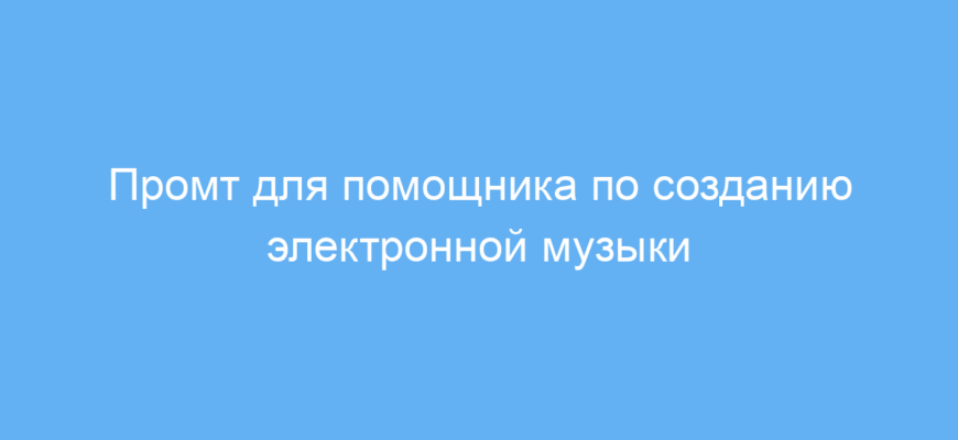 Этот промт предназначен для начинающих музыкальных продюсеров и создателей электронной музыки, которые хотят научиться быстро создавать качественные треки. Он помогает решать основные проблемы, с которыми сталкиваются новички: непонимание этапов композиции, сложности в звуковом дизайне, сведении и мастеринге.
