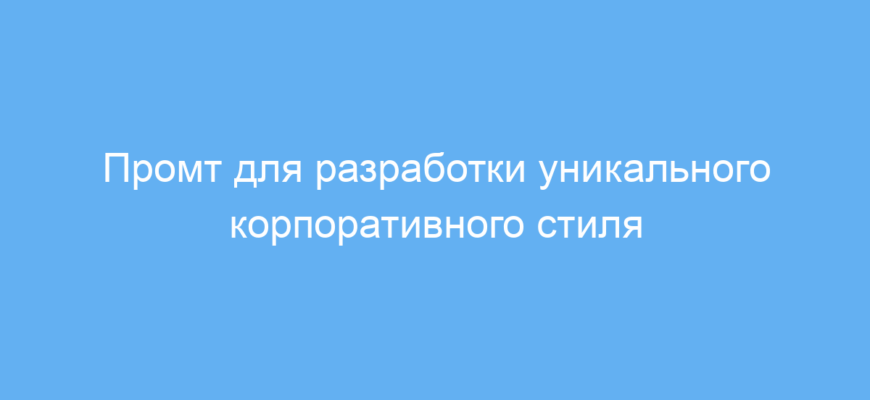 Этот промт создан для предпринимателей, маркетологов, дизайнеров и владельцев бизнеса, которые хотят создать или улучшить корпоративный стиль своей компании. Корпоративный стиль — это визуальное и смысловое оформление бренда, которое помогает сделать компанию узнаваемой и выделиться на рынке.