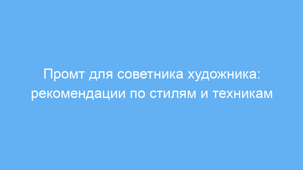 Перед началом работы с промтом важно четко определить свои художественные интересы: в каком средстве хочется развиваться и какие стили уже близки. Заполните переменные <Средство>, <Стиль искусства A> и <Стиль искусства B> максимально конкретно, чтобы получить точные рекомендации.