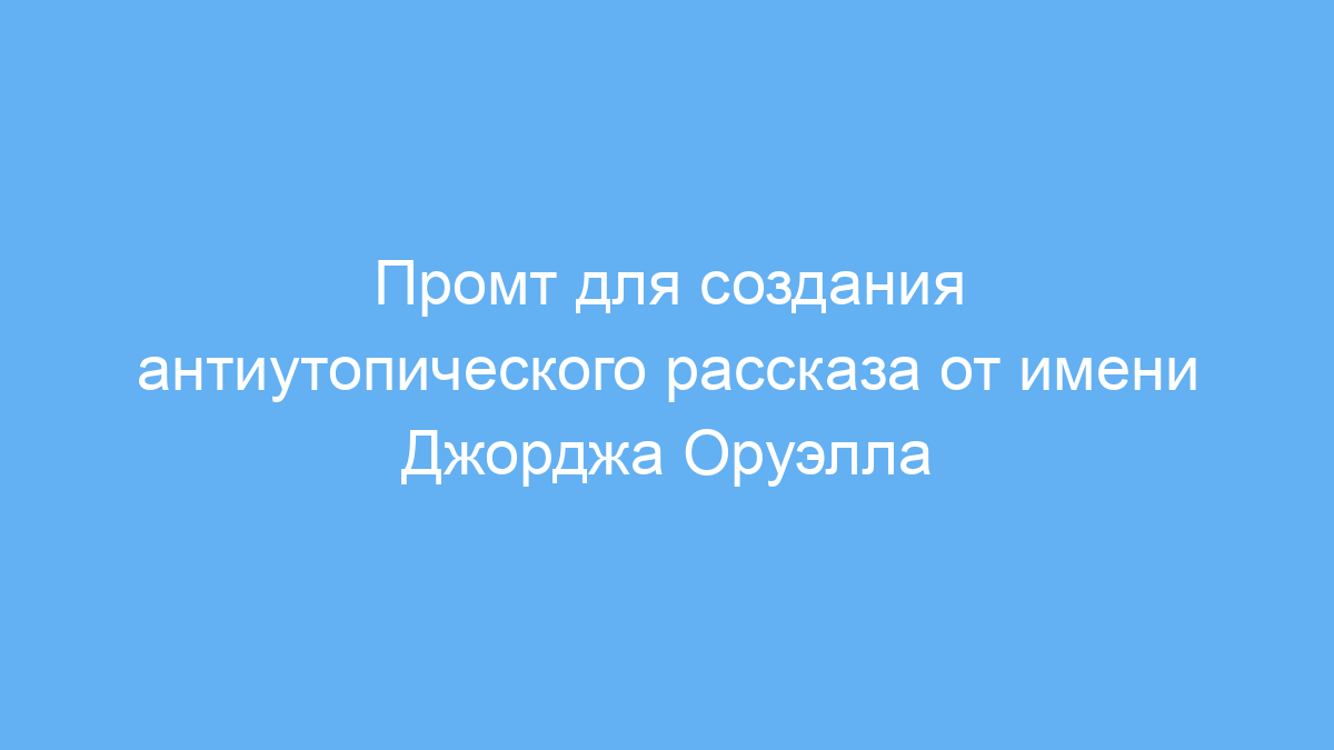 Этот промт подходит писателям, сценаристам и создателям контента, которые хотят быстро сгенерировать уникальный антиутопический рассказ или идею для книги. Особенно полезен он тем, кто интересуется творчеством Джорджа Оруэлла и хочет вдохновиться его стилем в новом контексте.