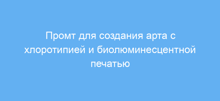 Рекомендуется использовать промт в сочетании с параметрами нейросети, которые поддерживают высокое разрешение и детализацию, чтобы лучше передать тонкости хлоротипии и свечения биолюминесцентных элементов.
