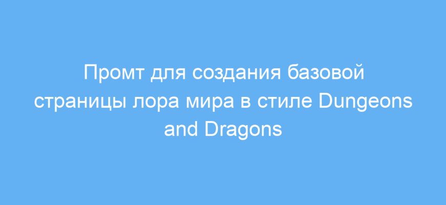 Этот промт значительно упрощает создание структурированных и вдохновлённых лоровых страниц, экономит время и помогает сохранять единый стиль, близкий к духу Dungeons and Dragons. Он станет полезным инструментом для геймдизайнеров, писателей и всех любителей фэнтези, которые хотят оживить свой мир подробно и интересно.