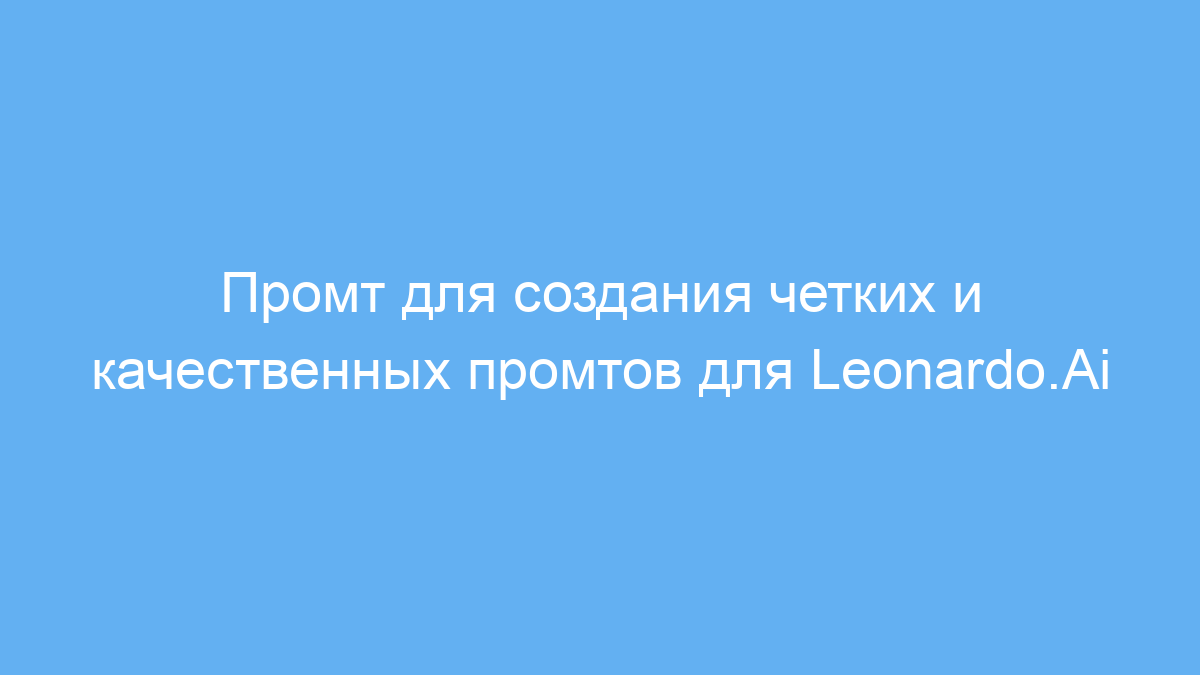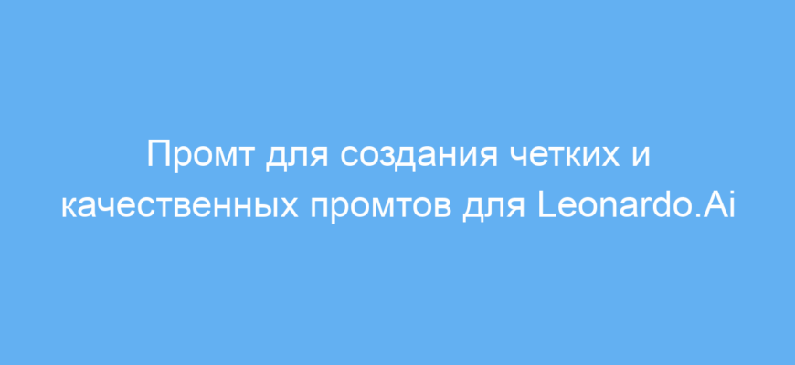 Этот промт предназначен для инженеров и пользователей, которые создают промты для Leonardo.Ai — модели искусственного интеллекта для генерации художественных изображений. Его главная задача — помочь формировать точно структурированные позитивные и негативные запросы, которые дают чистый и качественный результат без дефектов.