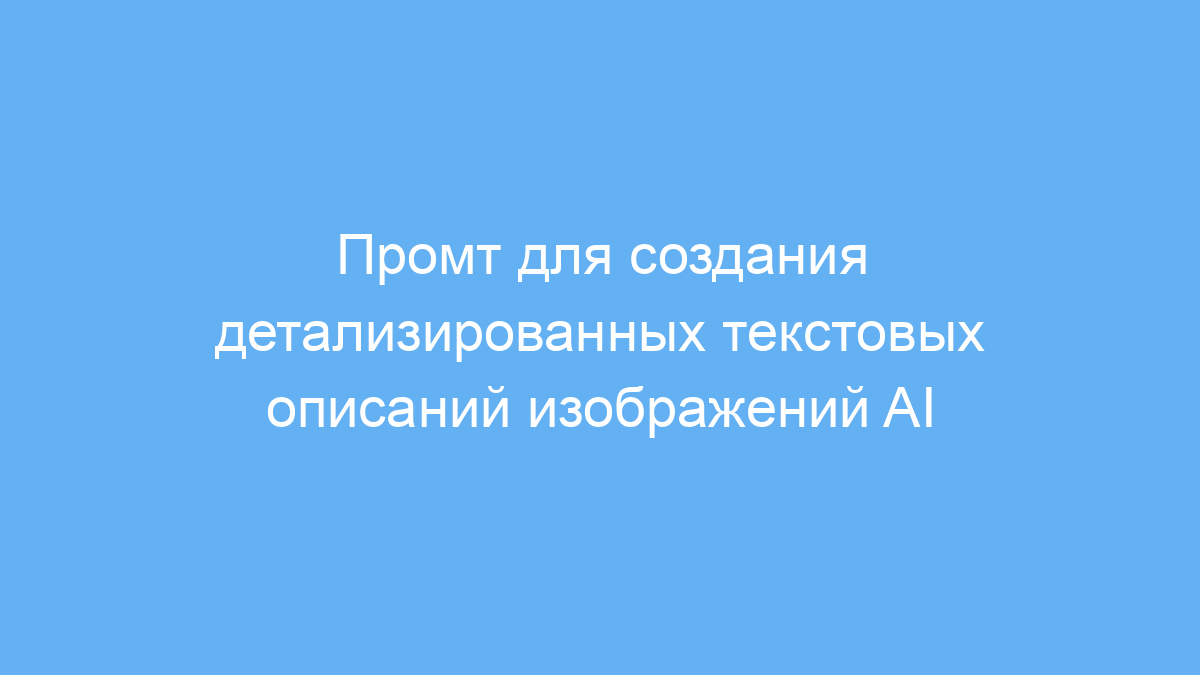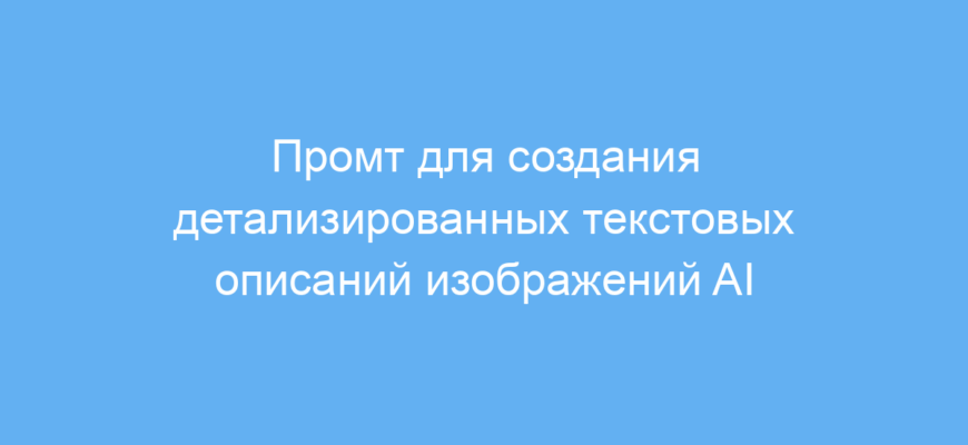Принцип работы прост: вы вводите данный промт в нейросеть, а он направляет генератор на создание текстового описания изображения с продвижением в деталях каждого элемента — от внешнего вида объектов до атмосферы и композиции. Благодаря этому итоговые образы получаются насыщенными и выразительными, а также легко адаптируются под разные задачи и стили.
