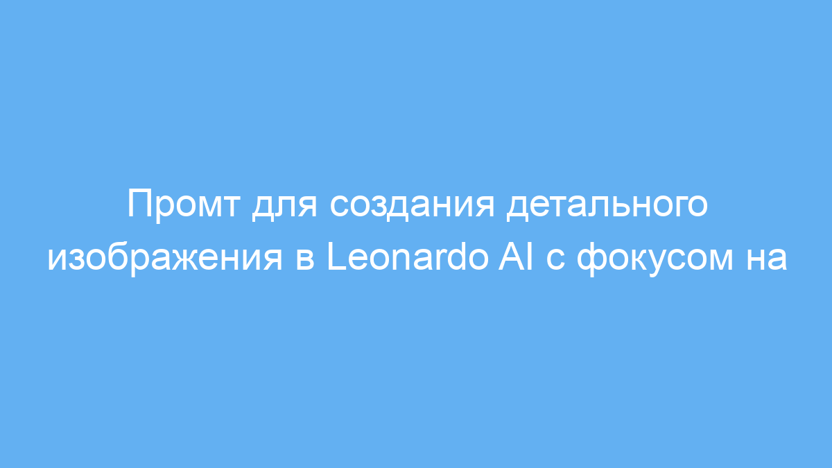 Этот промт создан для пользователей генеративного ИИ Leonardo AI, которым важно получить максимально точное и детализированное изображение. Он рассчитан на художников, дизайнеров, маркетологов, создателей контента и всех, кто работает с визуальными материалами. Использование такого промта помогает избежать неоднозначностей и получить картинку, которая соответствует задумке по композиции, стилю, атмосфере и техническим параметрам.